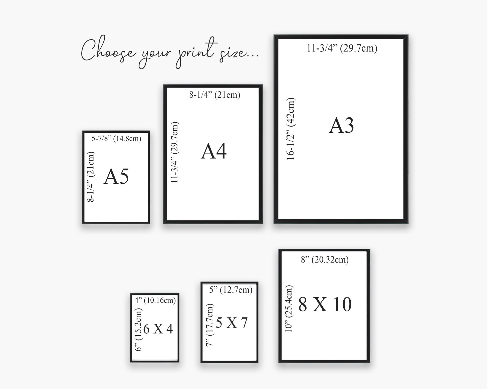 - Options: Available as a digital download, prints, or A4/A3 framed prints (black or white frames available).