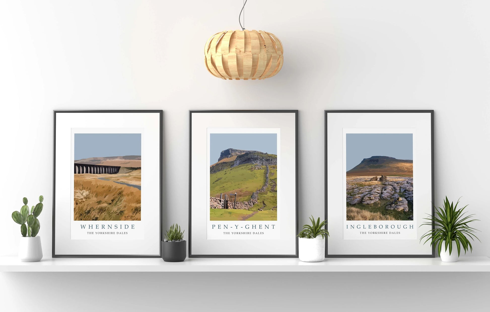 Bring the stunning beauty of the Yorkshire Dales into your home with this exclusive set of three art prints. Featuring iconic landscapes of Whernside, Pen-y-Ghent, and Ingleborough, these modern illustrations capture the serene hills, historic viaducts, and rugged stone walls of this beloved region.